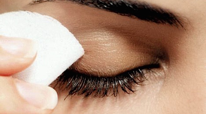 - Desmaquillar los ojos con algodón impregnado en desmaquillante. Colocarlo sobre el párpado durante unos segundos y lo deslizamos suavemente hacia abajo hasta acabar de retirar toda la máscara. También podemos utilizar bastoncillos y desmaquillante para acabar de limpiarlas bien.