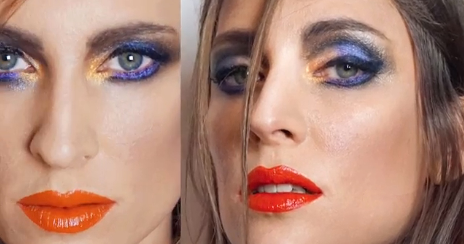 Es un maquillaje con colores muy vivos, destacando especialmente los ojos con una mezcla de tonos cálidos y fríos y un bien marcado eye-liner. Potenciando las pestañas con máscara y pestañas postizas. Y así como se viene diciendo siempre que si potenciamos ojos, los labios deben ir más neutros, en este caso, este tipo de maquillaje nos permite hacer prácticamente lo que queramos. Es un maquillaje más enfocado a lo que llamaríamos maquillaje para moda, editoriales, beauty, etc. por lo que estamos abiertos a trabajar con todo tipo de colores y texturas. Eso sí siempre teniendo una lógica estética.