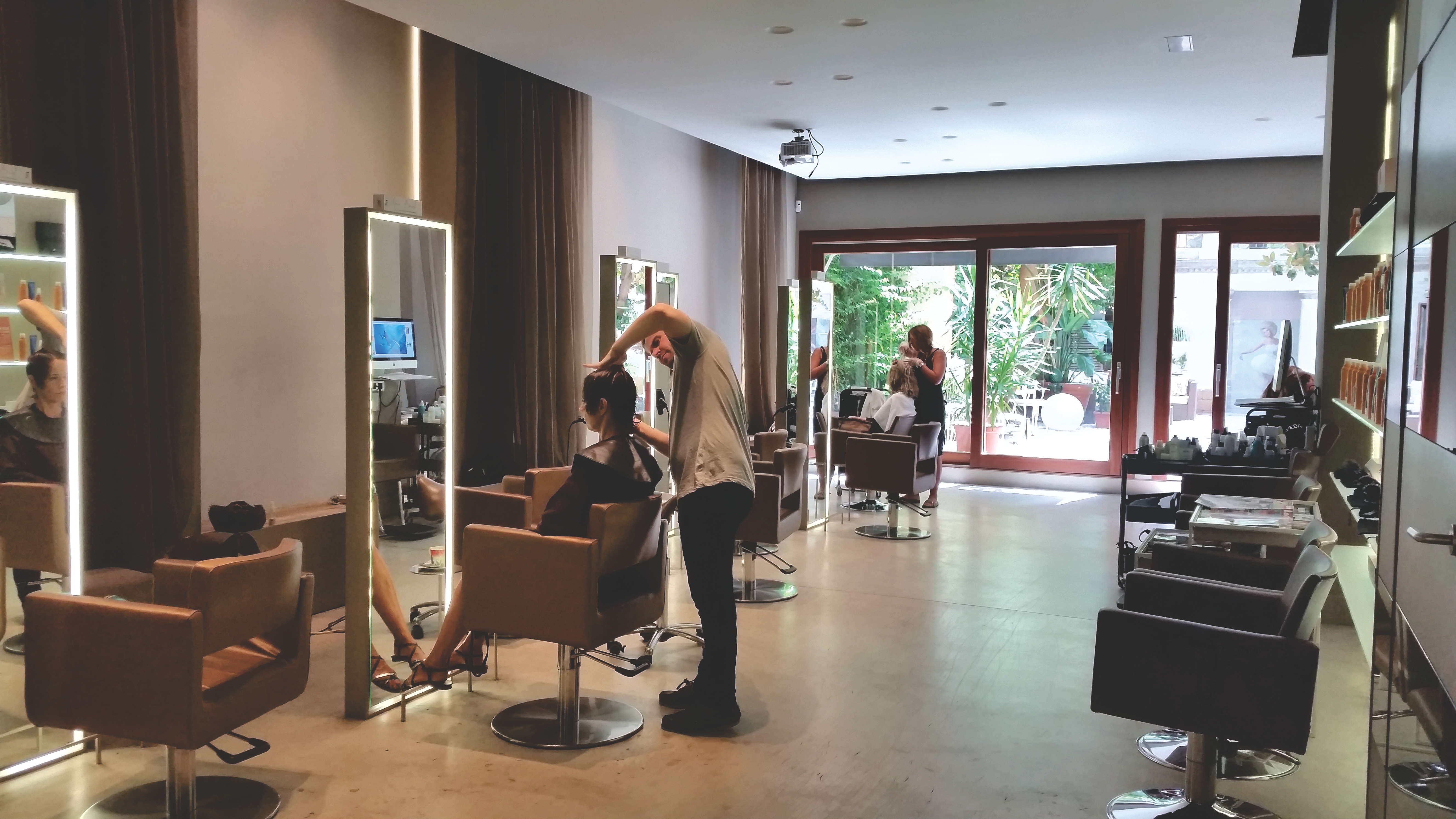 Seguimos con la zona de peluquería, muy espaciosa y sin la sensación de ajetreo por el ruido, y al fondo está ese fabuloso jardín que da un a paz infinita y desde donde tienes acceso a la cabina de estética donde realizan tratamientos faciales y corporales.