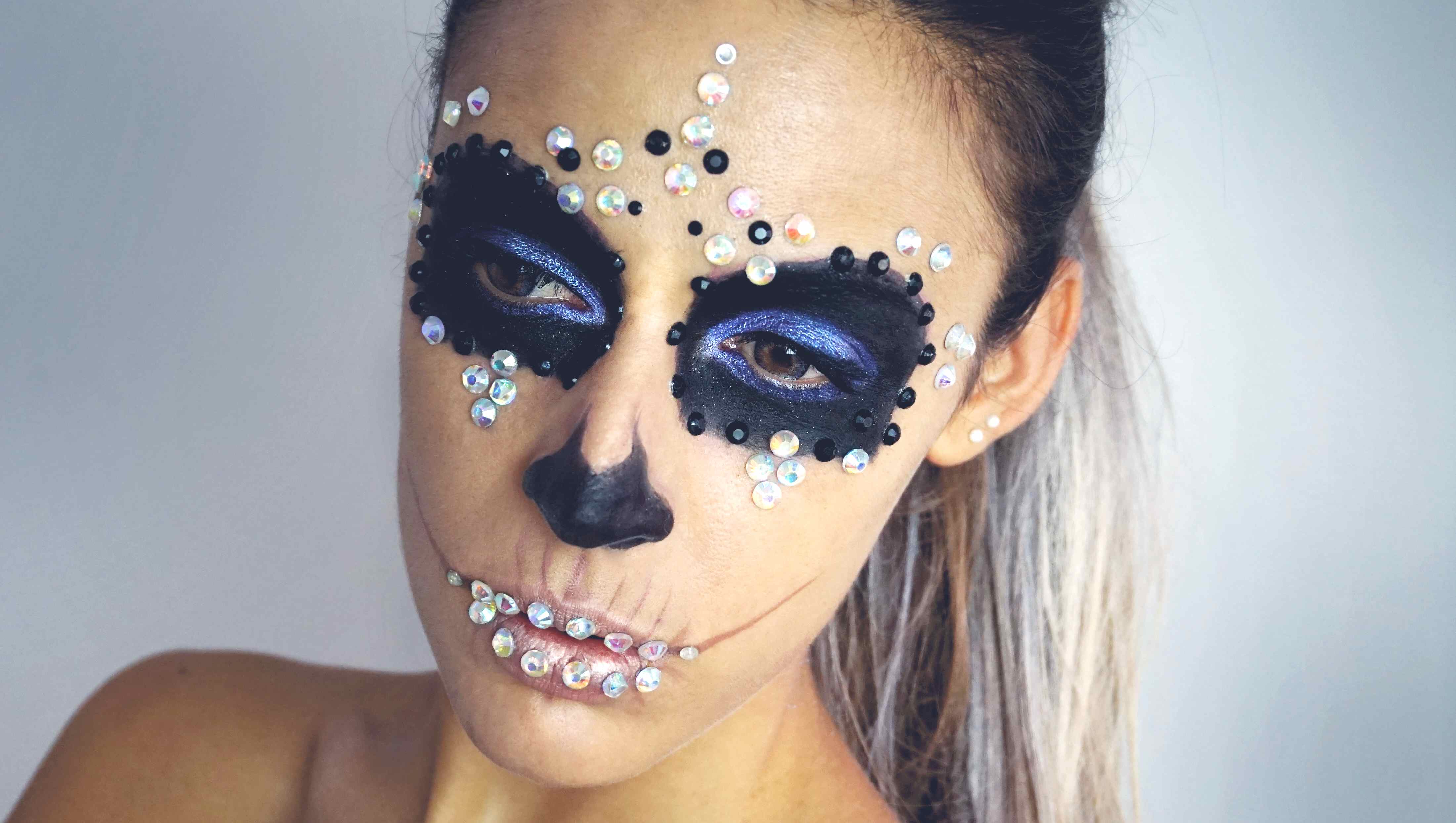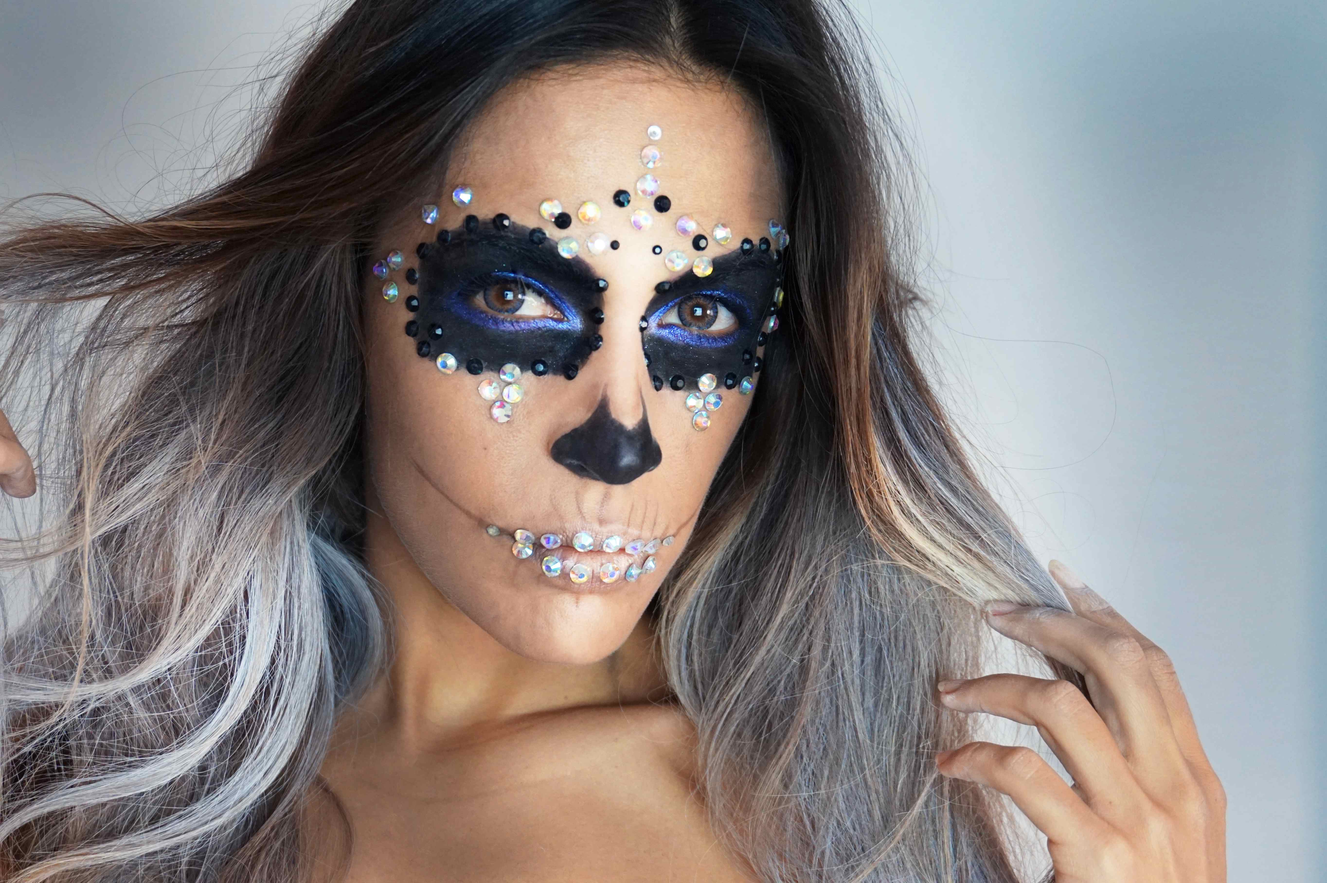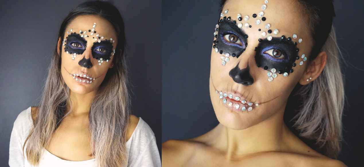 El maquillaje de calavera es uno de los más vistos en la noche de Halloween. Así que os dejo una versión muy sencilla para que seáis las elegantes reinas de la noche más terrorífica del año…..