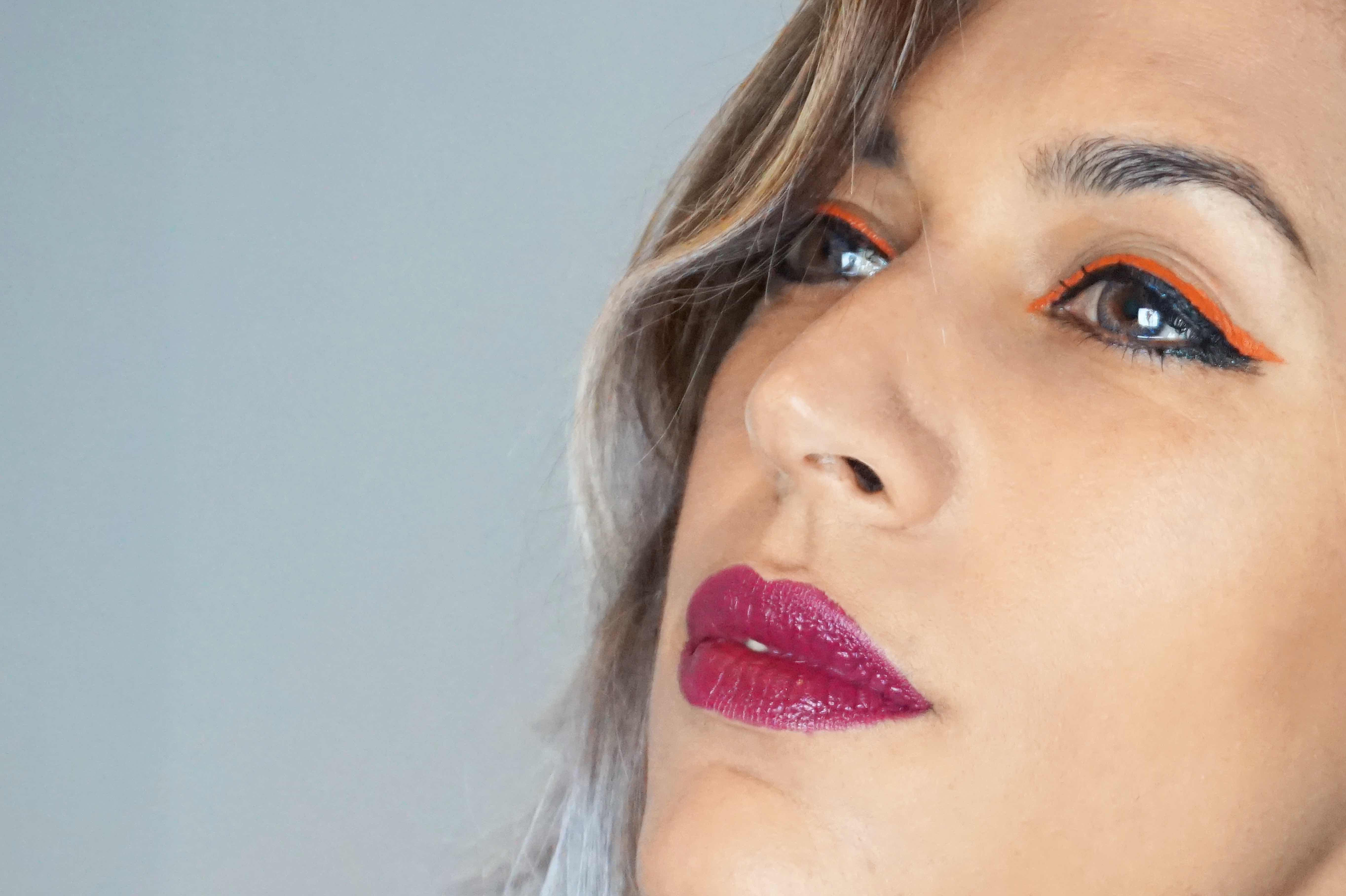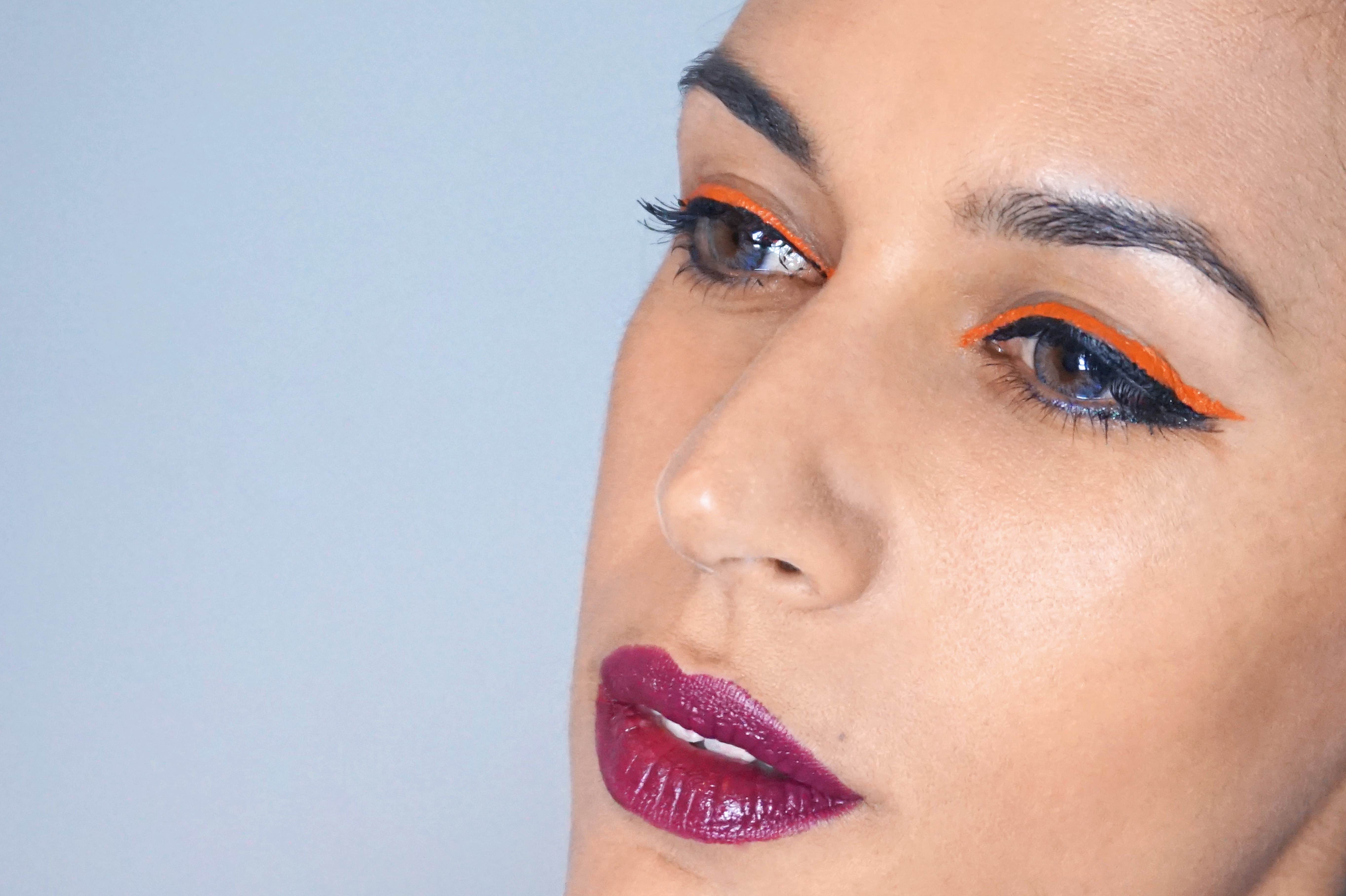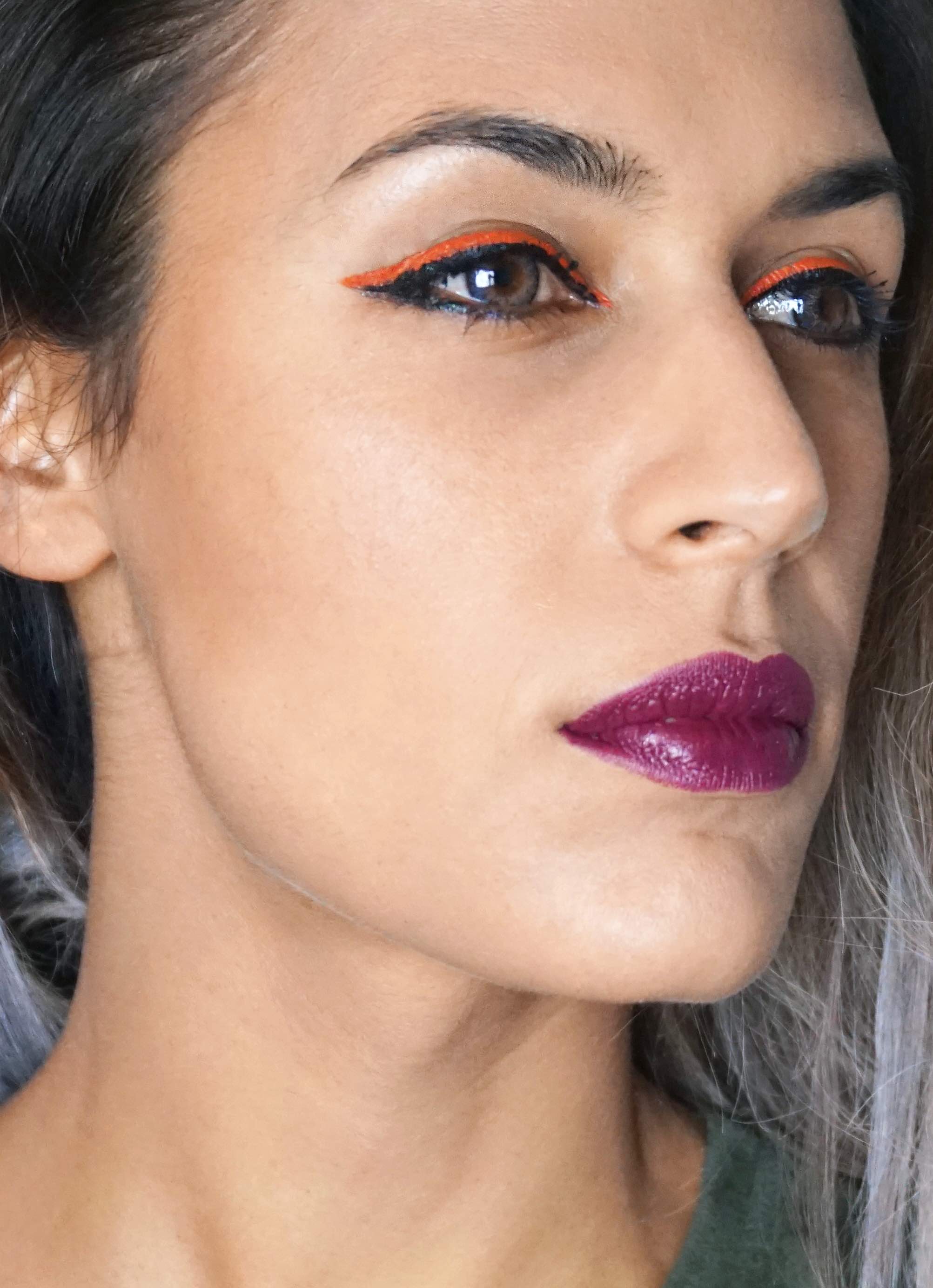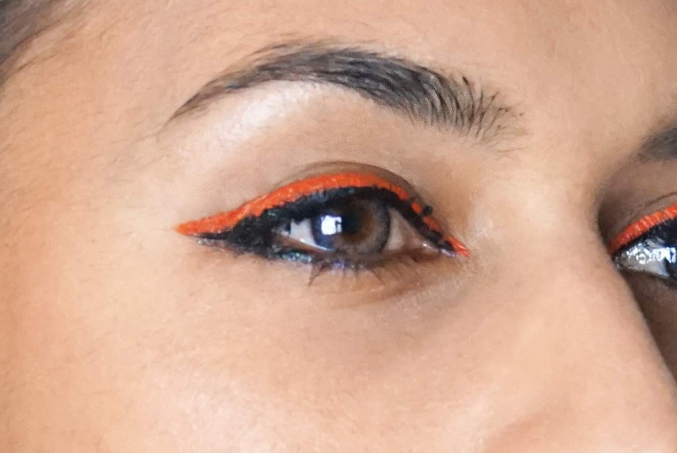 Tantos días de maquillajes han hecho que me inspire, así q hoy os dejo un eye-liner diferente. De dos colores. Y si, elegí estos colores gracias a Halloween, bienvenidos días del terror! :D